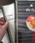 このセットで6シート(12ページ)のラミリング・メニューブックスリムが10冊作れます。34穴あきラミネートフィルム(150ミクロン)でラミネートして、サイズがぴったりあった専用プラスチックリングをパチン!とはめたら出来上がり。(中に挟む印刷用紙は含まれていません。ご自身で用意してください)